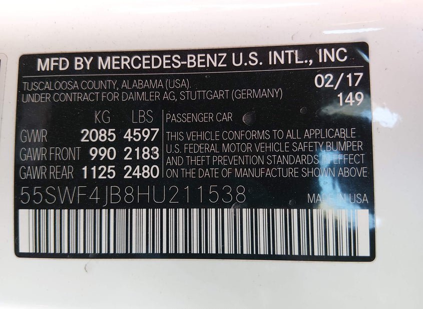 - VIN: 55SWF4JB8HU211538