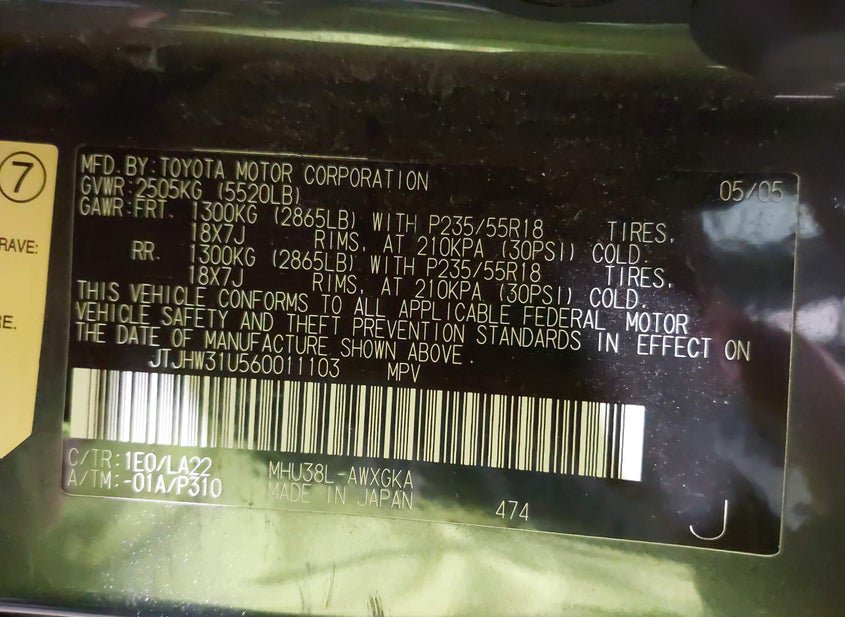 - VIN: JTJHW31U560011103