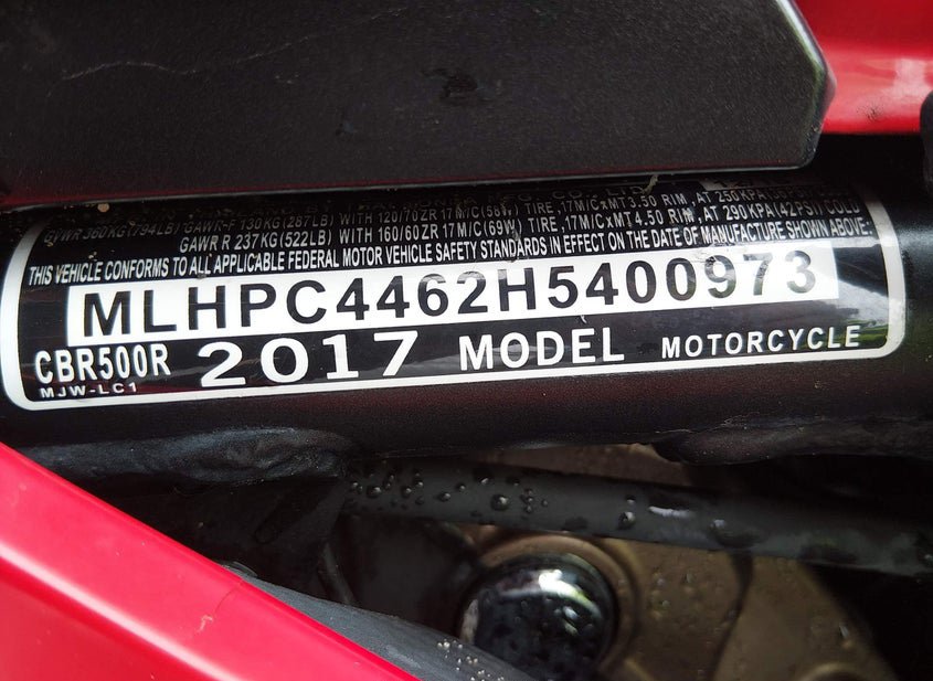 - Название лота: 2017 HONDA CBR500 R