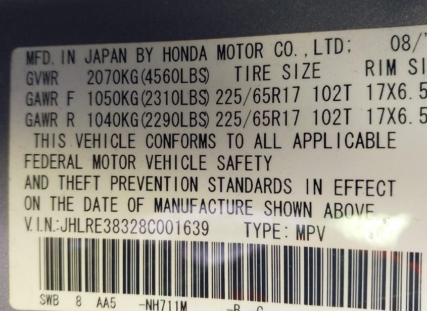 - VIN: JHLRE38328C001639