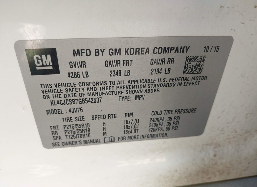 - VIN: KL4CJCSB7GB542537