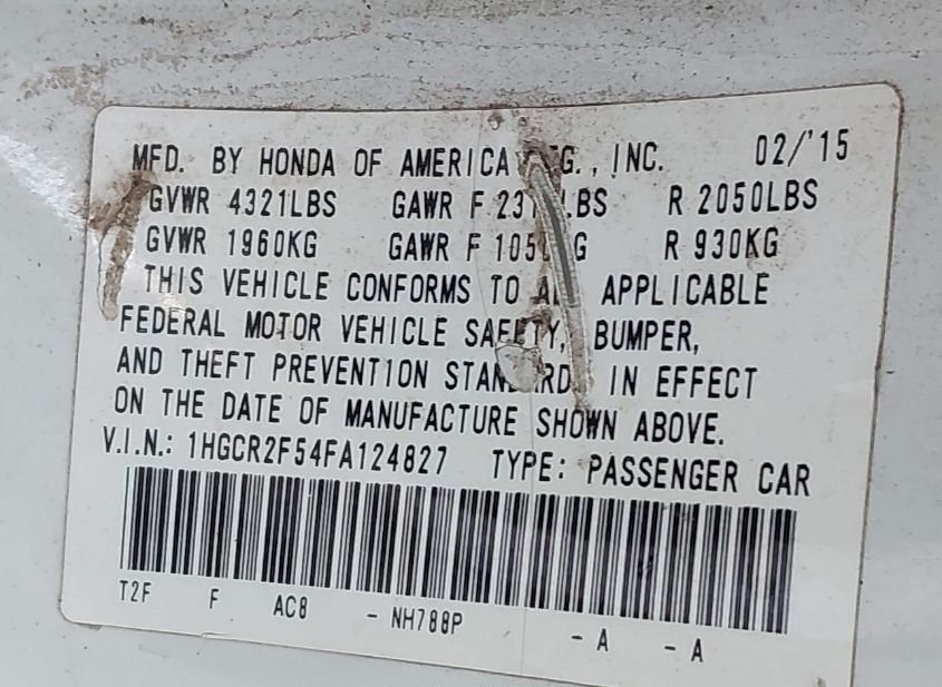 - VIN: 1HGCR2F54FA124827