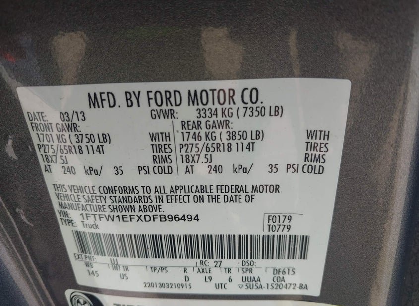 - VIN: 1FTFW1EFXDFB96494
