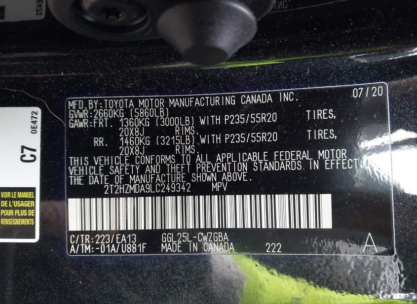 - VIN: 2T2HZMDA9LC249342
