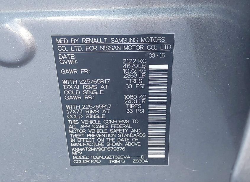 - VIN: KNMAT2MV9GP679376