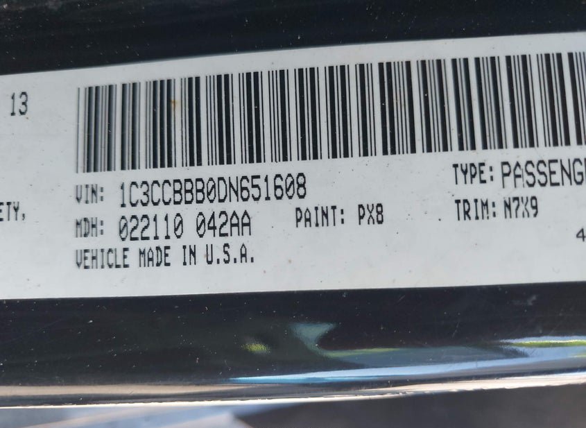 - VIN: 1C3CCBBB0DN651608