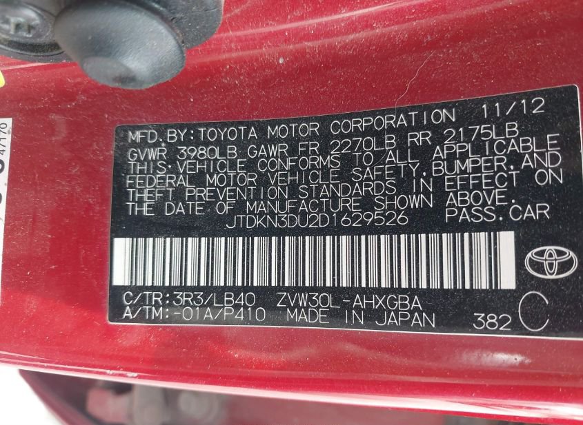 - VIN: JTDKN3DU2D1629526