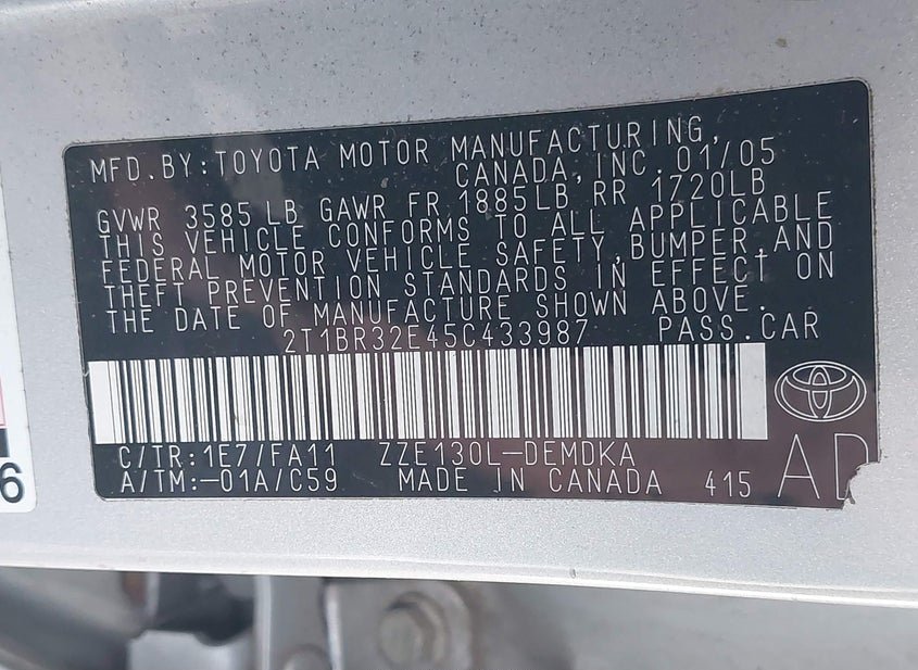 - VIN: 2T1BR32E45C433987