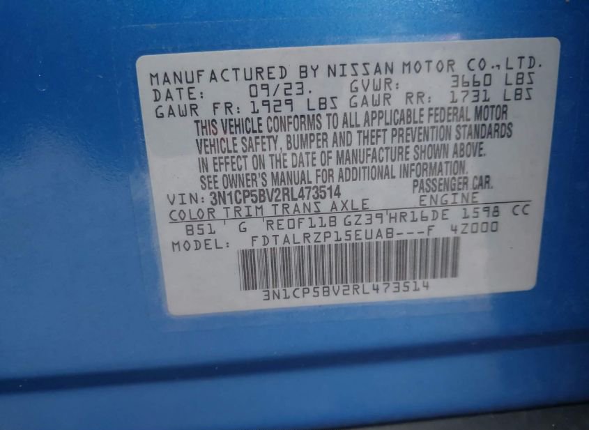 - VIN: 3N1CP5BV2RL473514