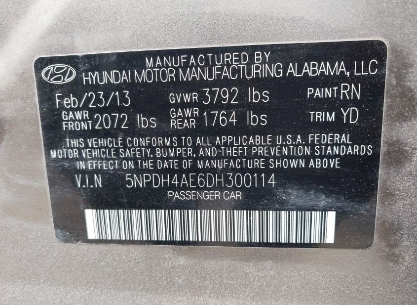 - Название лота: 2013 HYUNDAI ELANTRA LIMITED