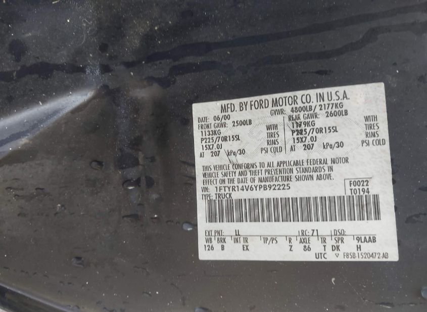 - VIN: 1FTYR14V6YPB92225