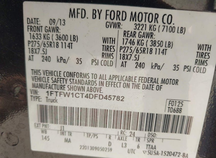 - VIN: 1FTFW1CT4DFD45782