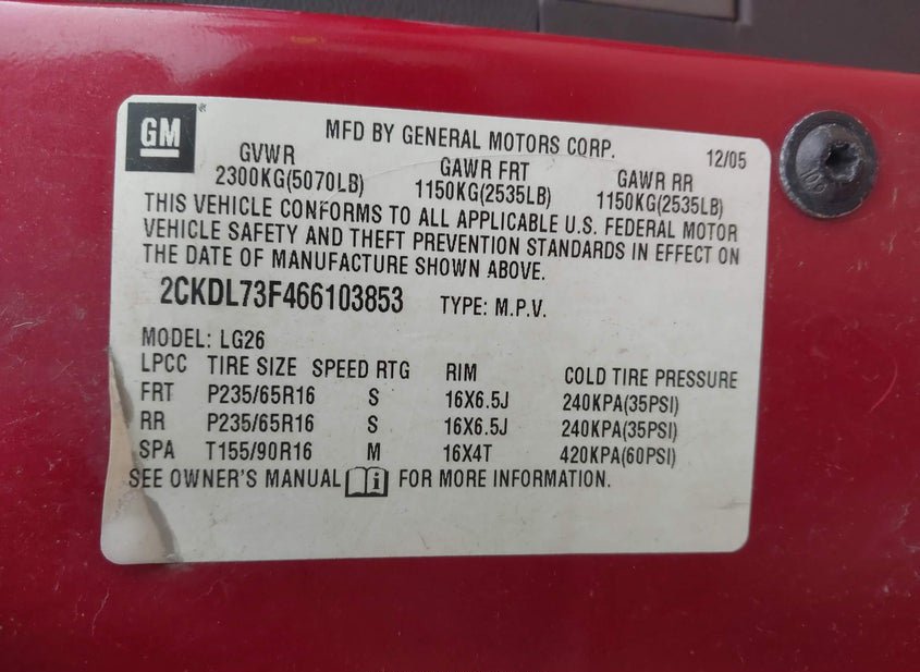 - VIN: 2CKDL73F466103853