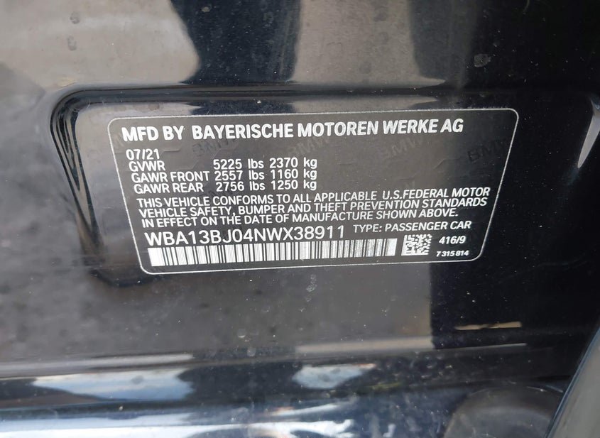 - VIN: WBA13BJ04NWX38911