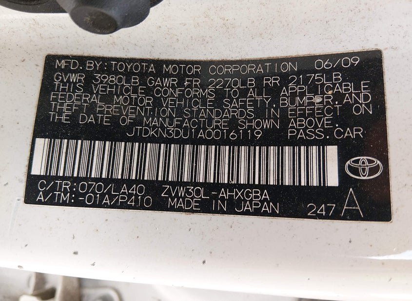 - VIN: JTDKN3DU1A0016119