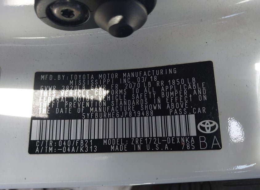- VIN: 5YFBURHE6JP819488