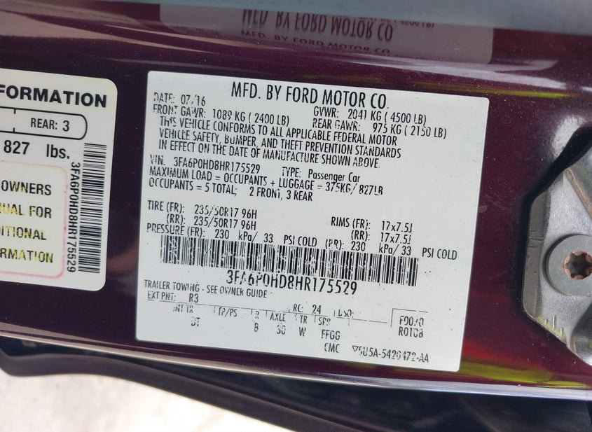 - VIN: 3FA6P0HD8HR175529
