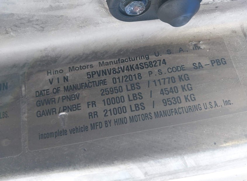 - VIN: 5PVNV8JV4K4S58274