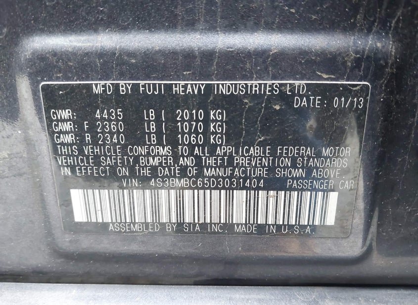 - VIN: 4S3BMBC65D3031404