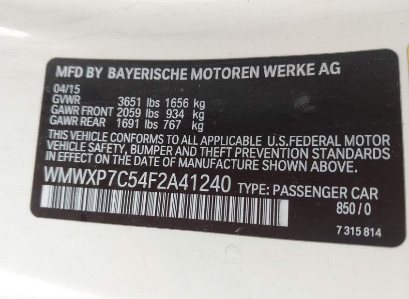 - VIN: WMWXP7C54F2A41240