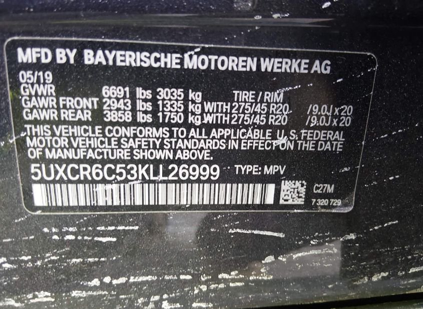 - VIN: 5UXCR6C53KLL26999