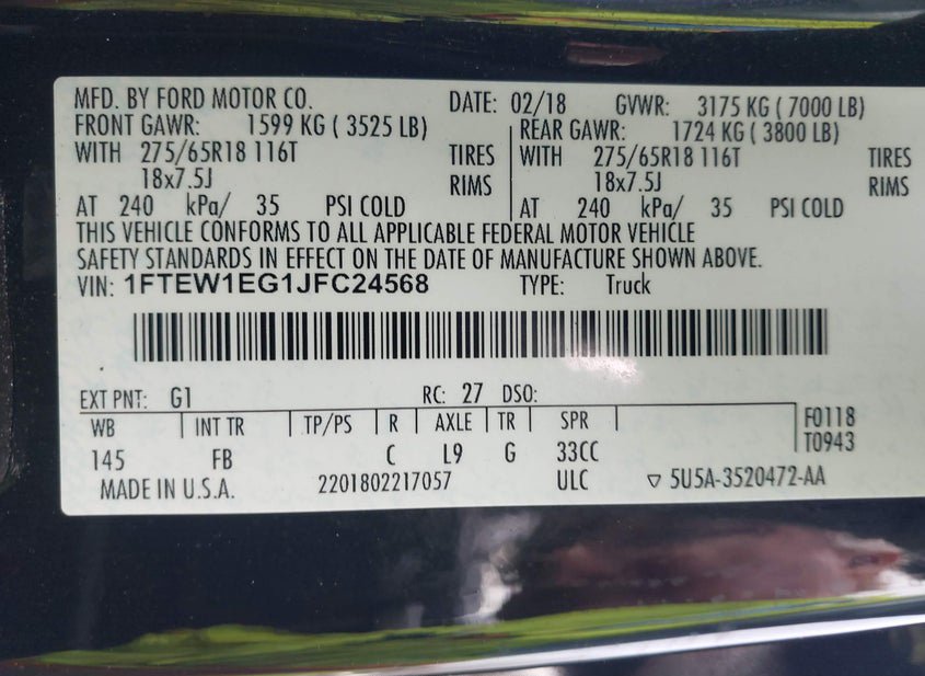 - VIN: 1FTEW1EG1JFC24568