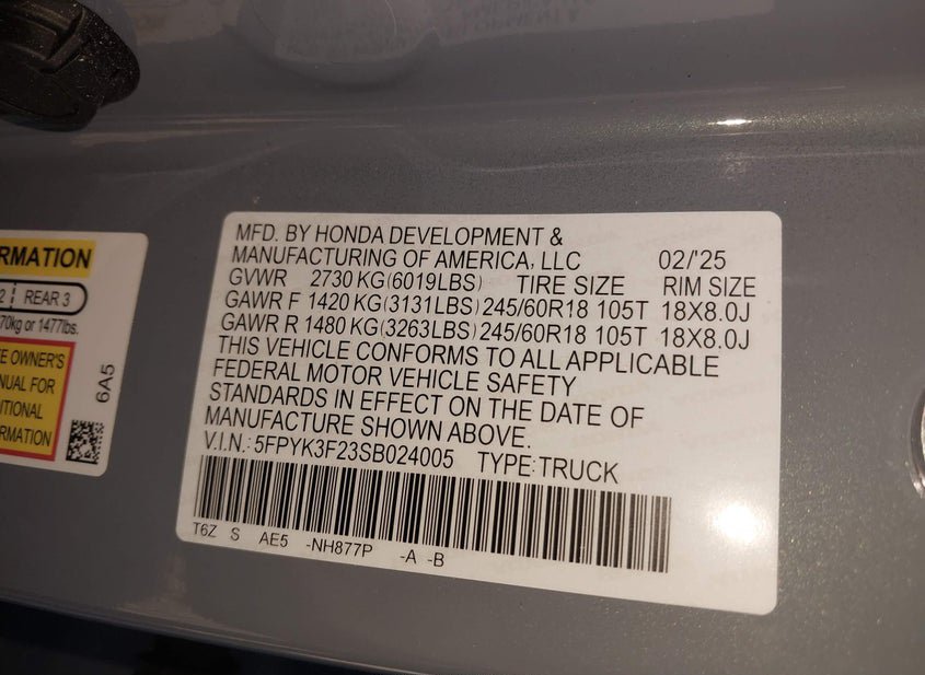 - VIN: 5FPYK3F23SB024005
