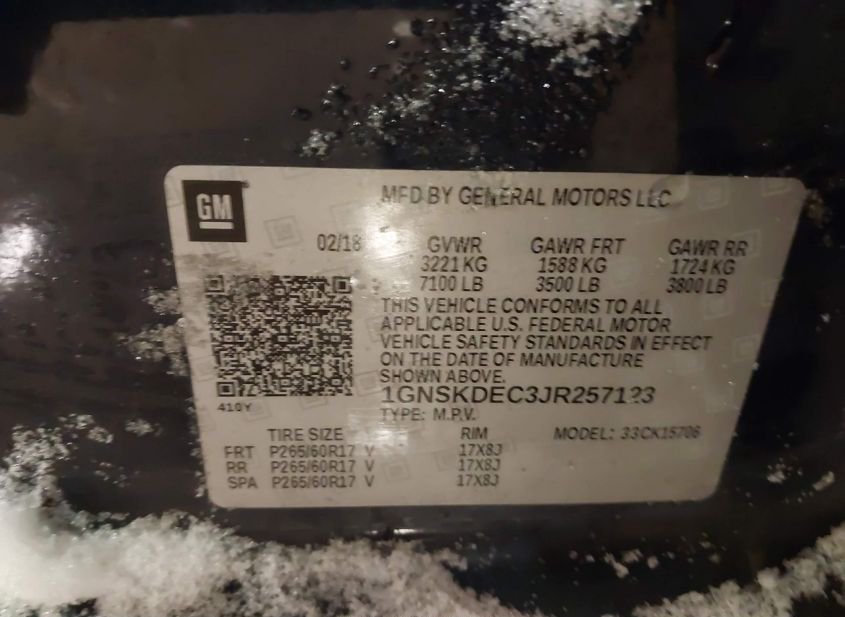 - VIN: 1GNSKDEC3JR257123