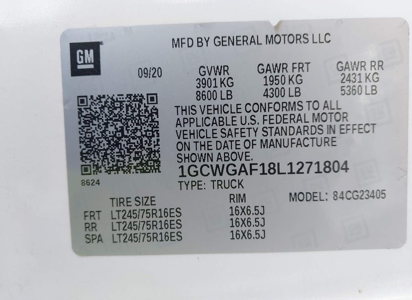 - VIN: 1GCWGAF18L1271804