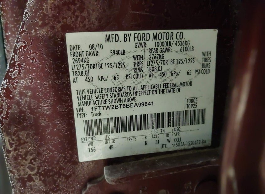 - VIN: 1FT7W2BT6BEA99641
