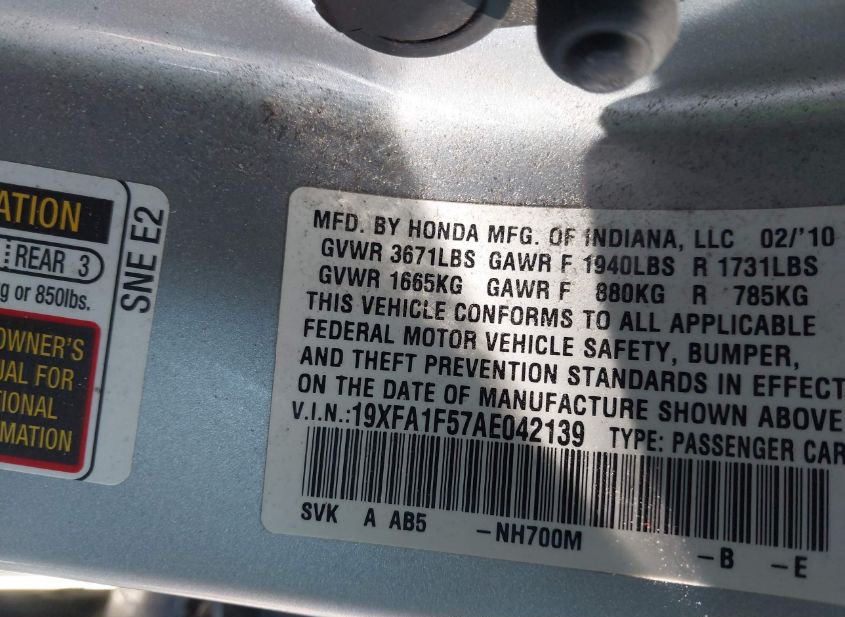 - VIN: 19XFA1F57AE042139