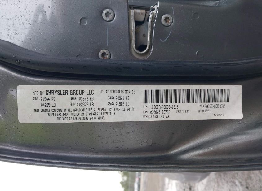 - VIN: 1C3CDFAA3DD241615