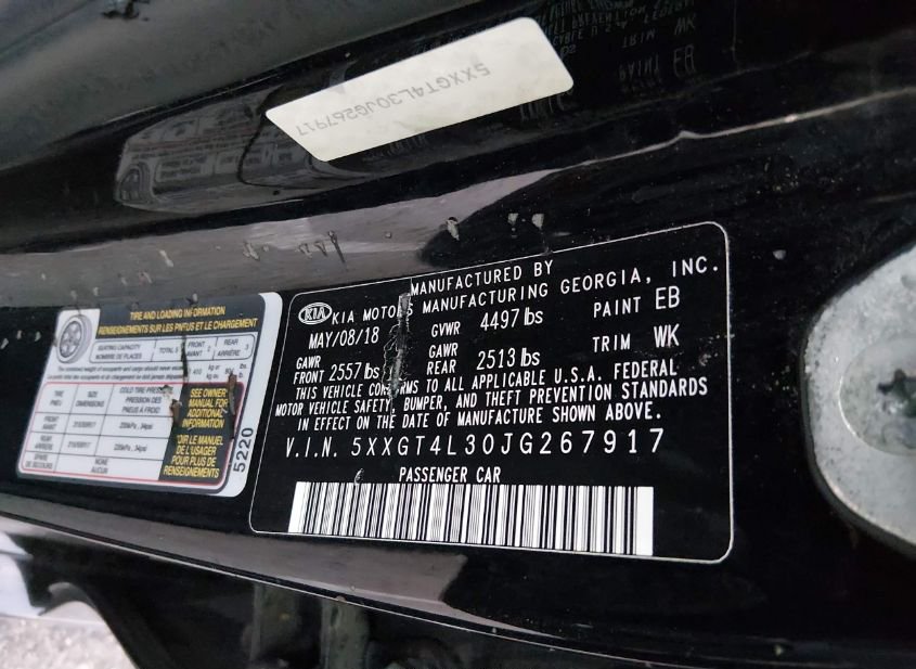 - VIN: 5XXGT4L30JG267917