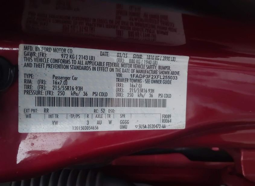 - VIN: 1FADP3F2XFL255033