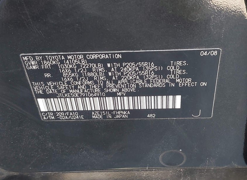 - VIN: JTLKE50E791064910