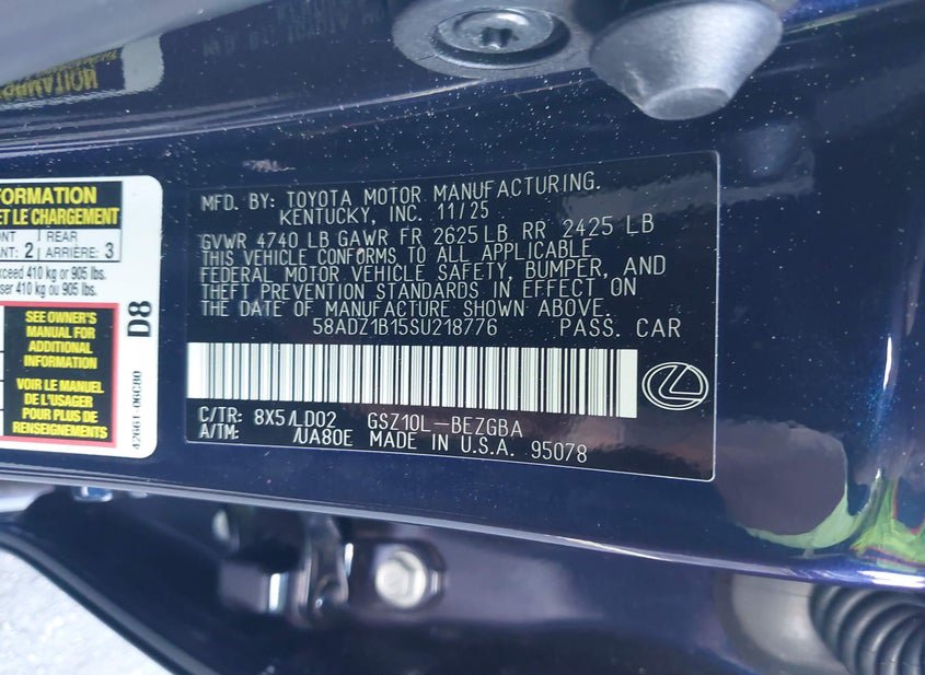 - Название лота: 2025 LEXUS ES 350