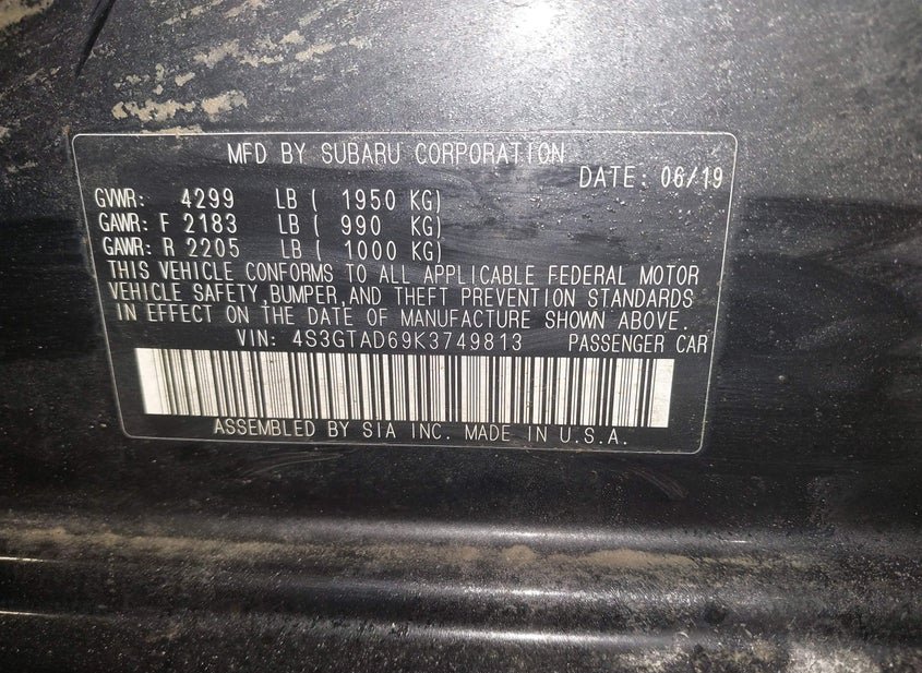 - VIN: 4S3GTAD69K3749813