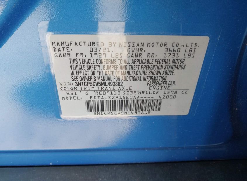 - VIN: 3N1CP5CV5ML493862