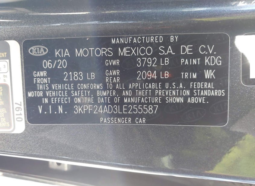 - VIN: 3KPF24AD3LE255587