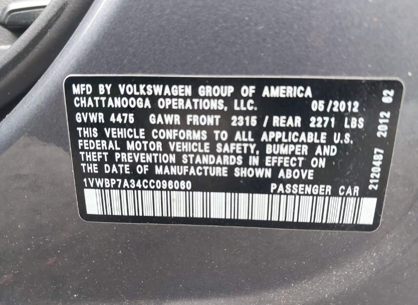 - VIN: 1VWBP7A34CC096060