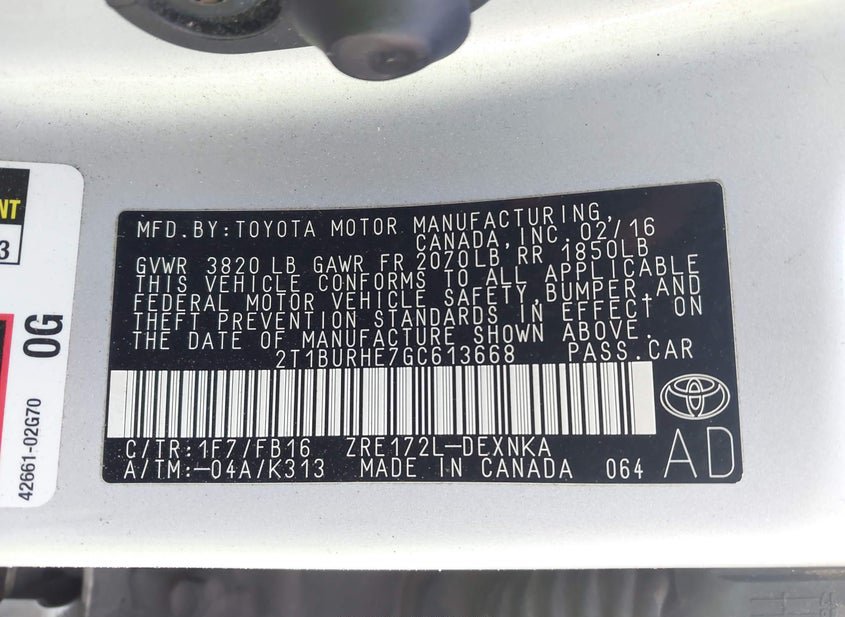 - VIN: 2T1BURHE7GC613668