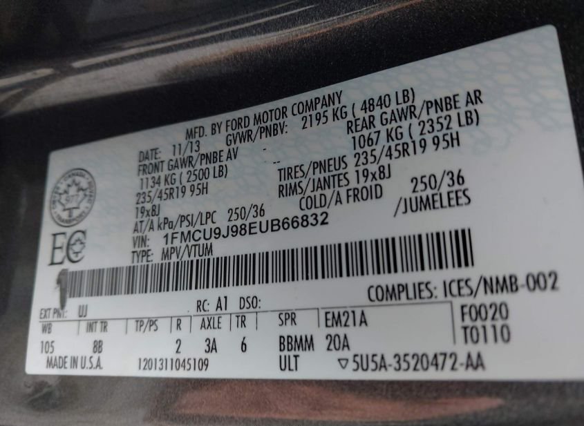 - VIN: 1FMCU9J98EUB66832