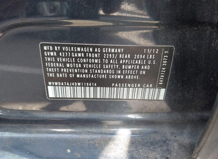 - VIN: WVWDA7AJ4DW119414