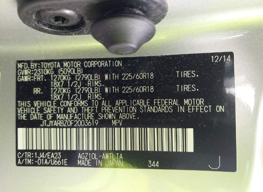 - VIN: JTJYARBZ0F2003619