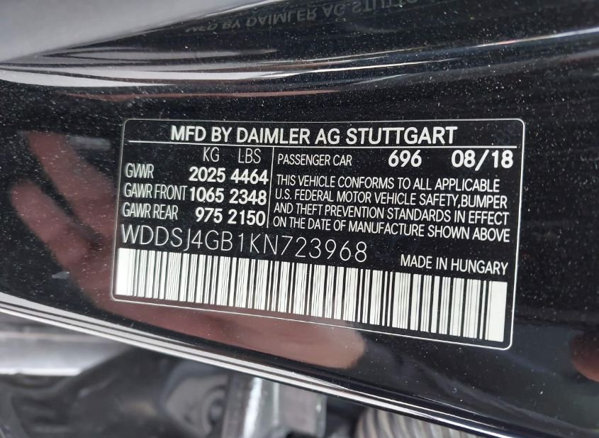 - VIN: WDDSJ4GB1KN723968