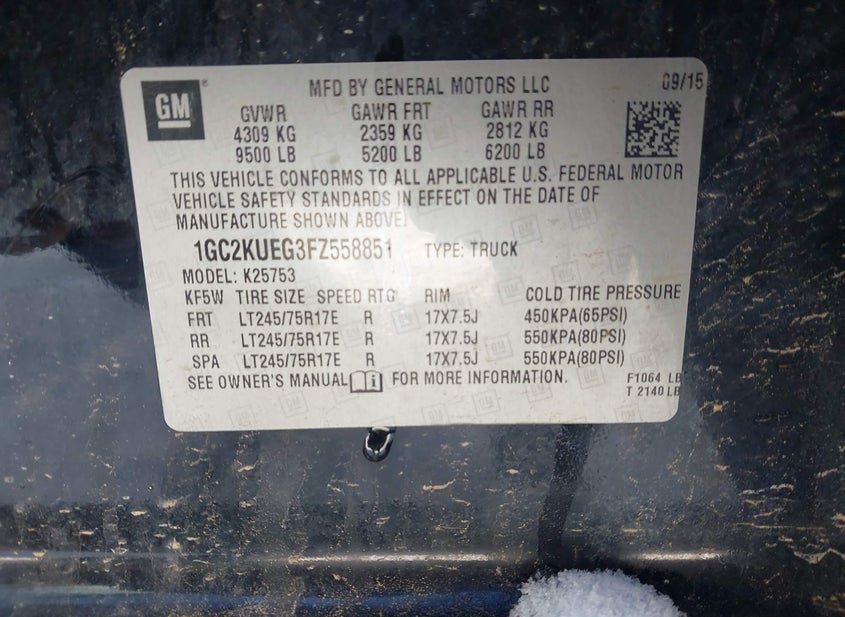 - VIN: 1GC2KUEG3FZ558851