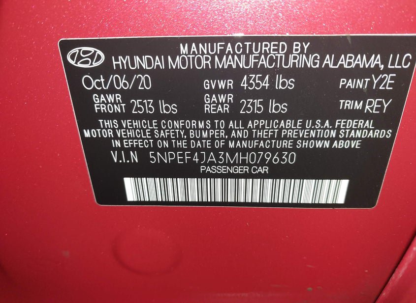 - VIN: 5NPEF4JA3MH079630