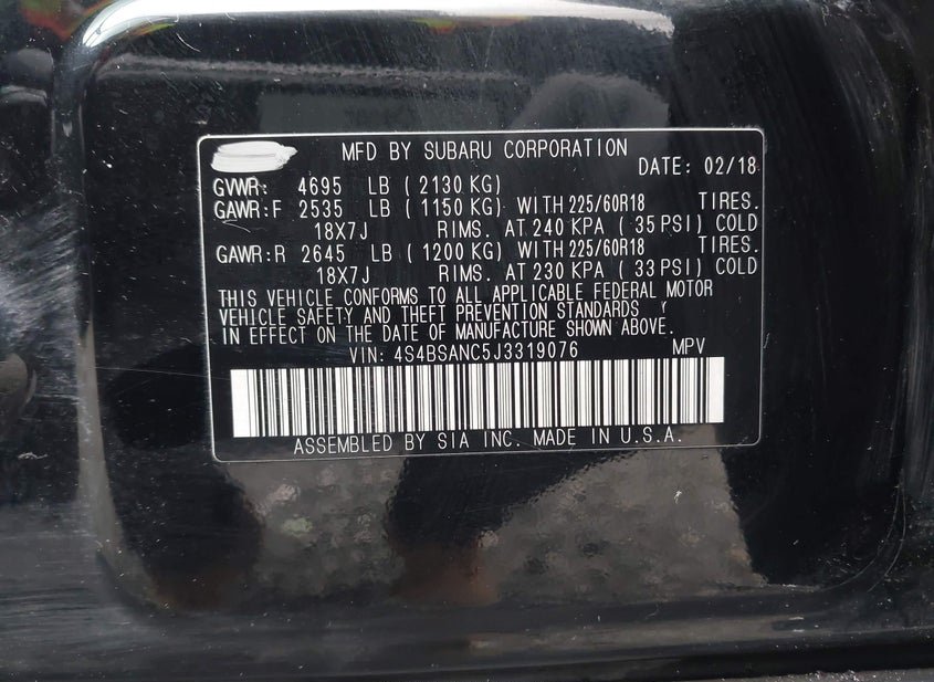 - VIN: 4S4BSANC5J3319076