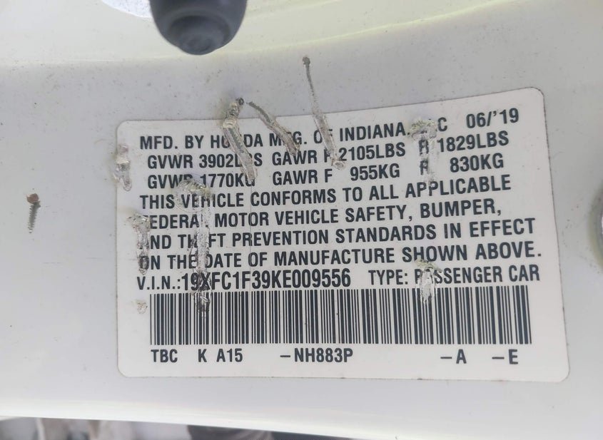 - VIN: 19XFC1F39KE009556