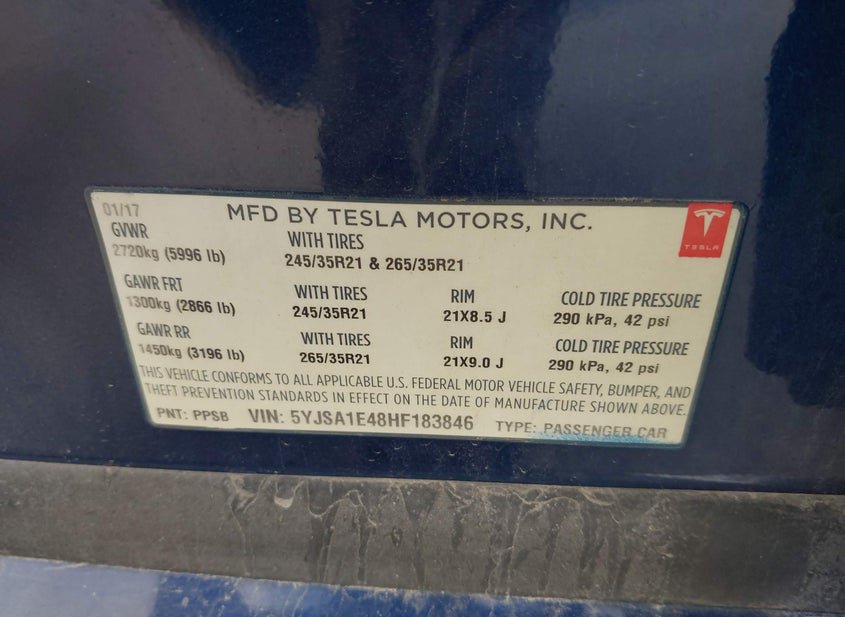 - Название лота: 2017 TESLA MODEL S 100D/60D/75D/90D/P100D